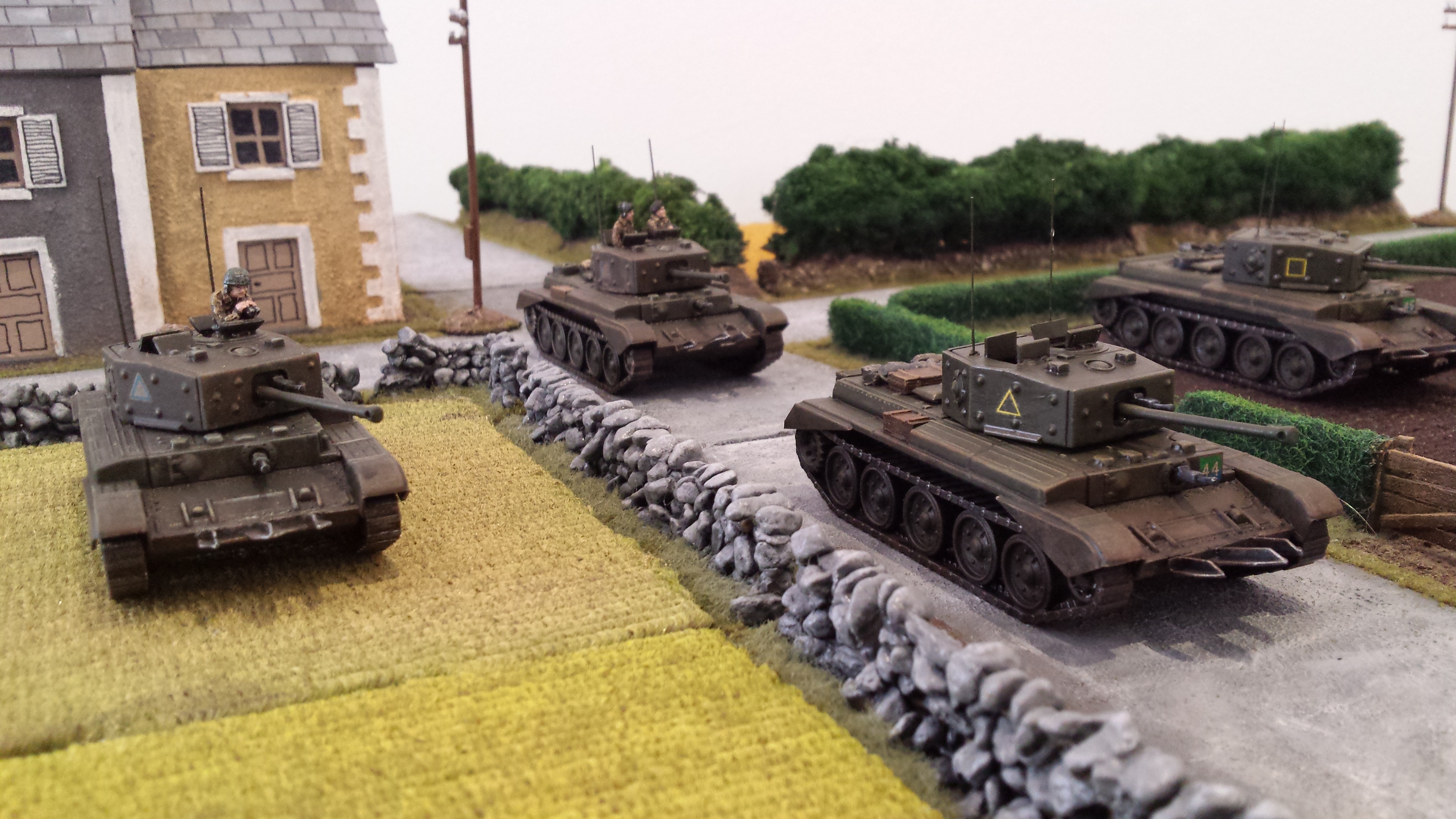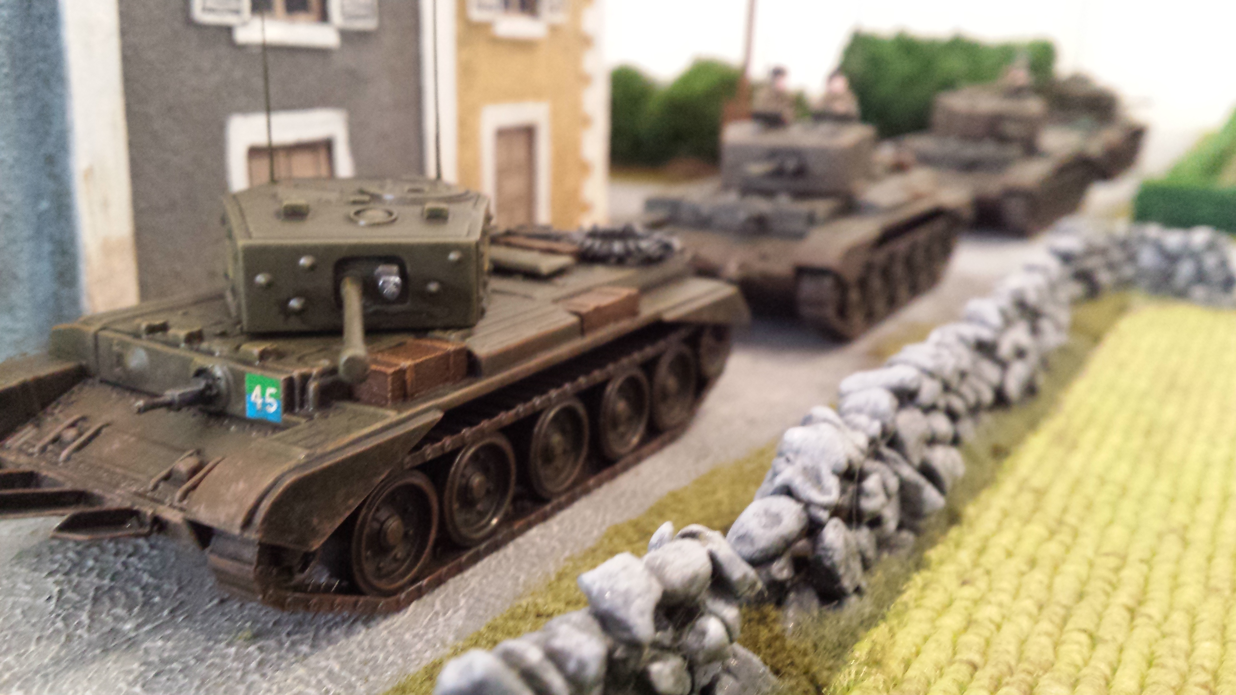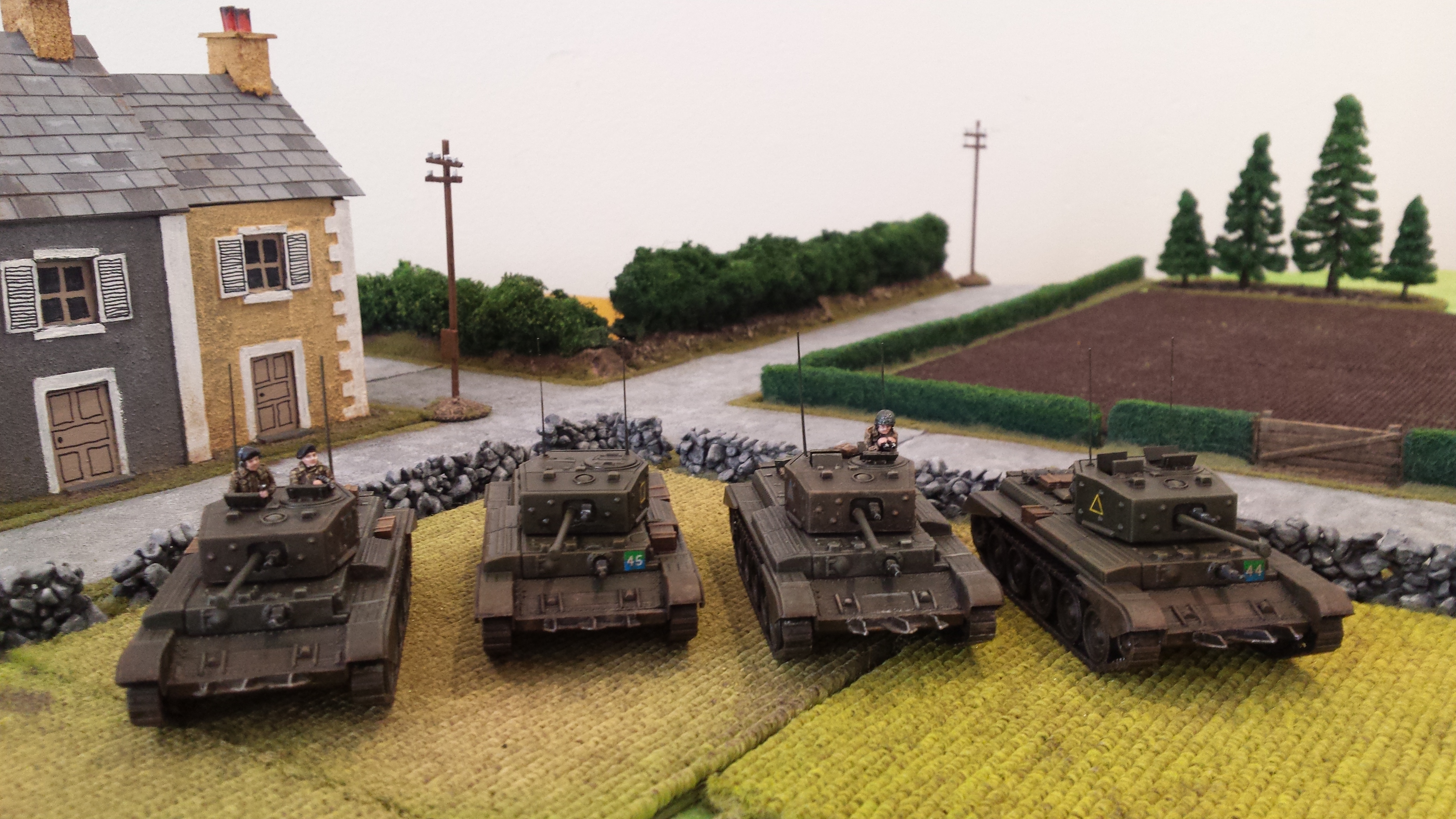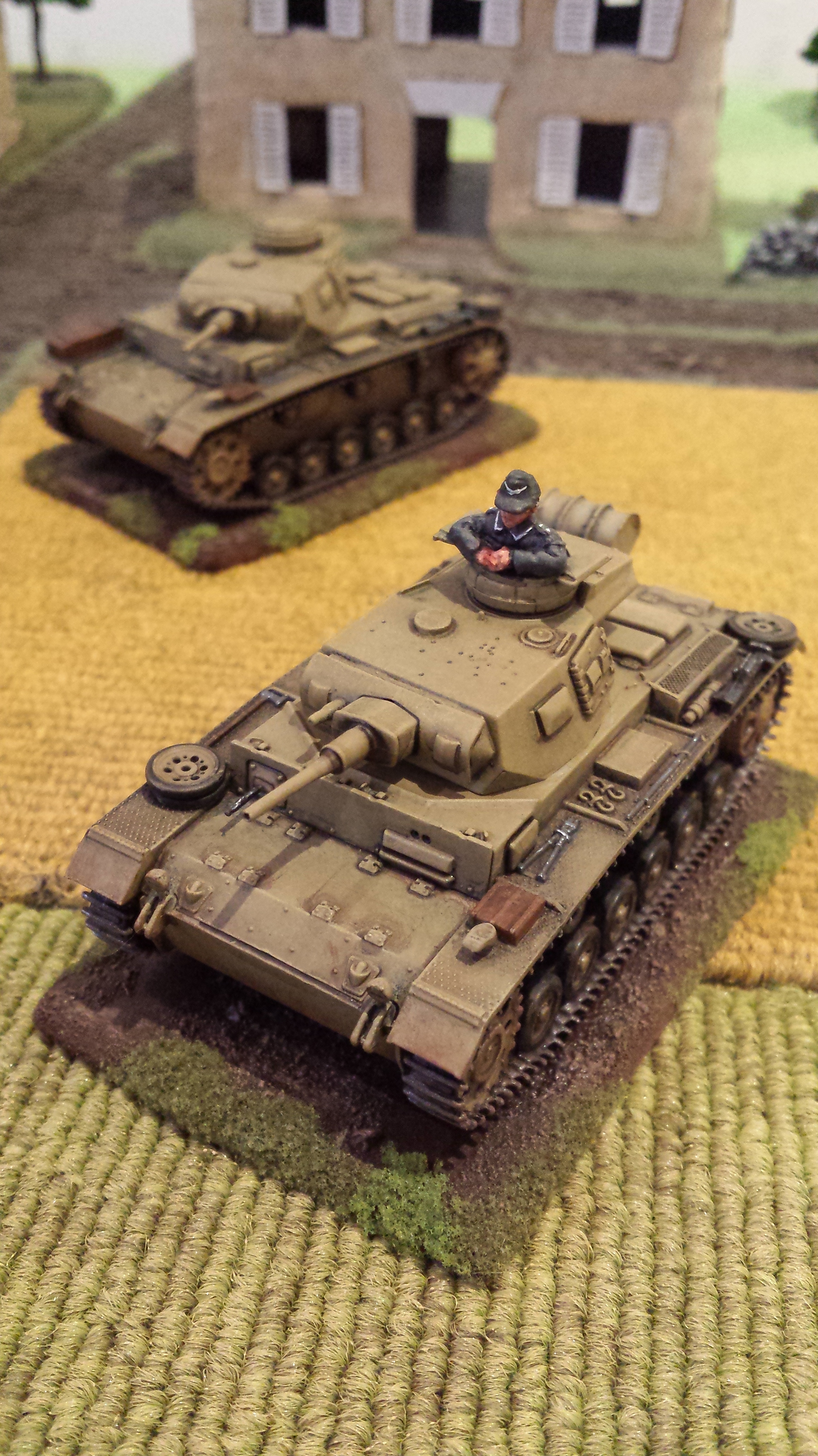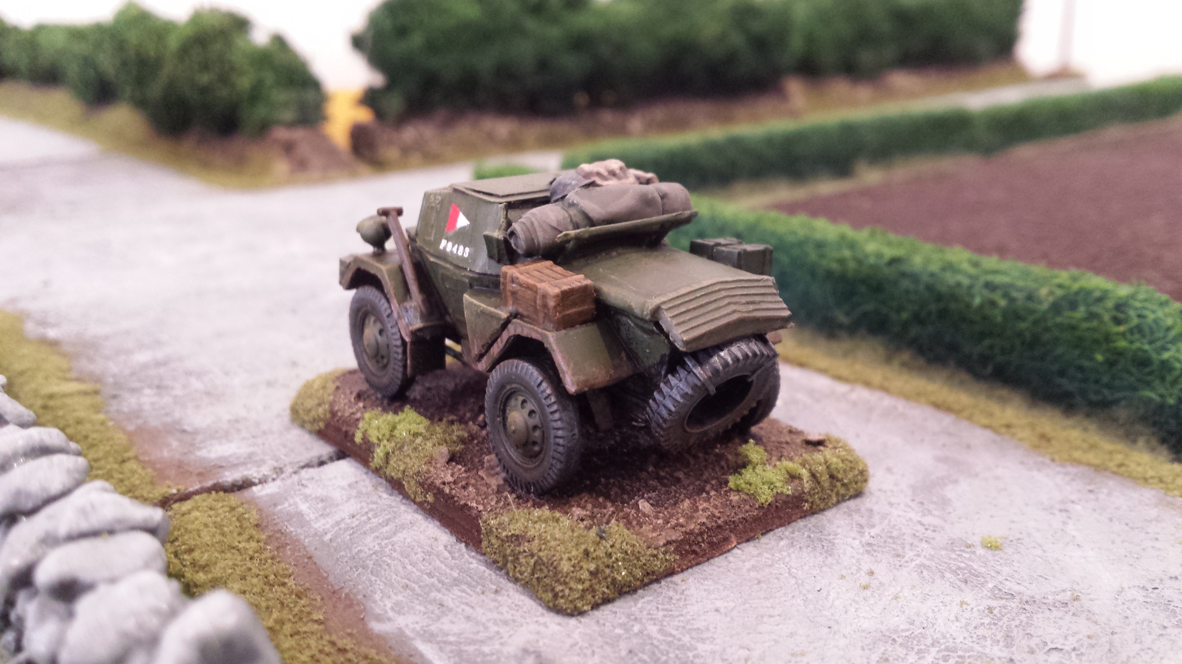 My painting of these guys is my own interpretation of German camouflage schemes, somewhere between peadot and oakleaf… I wasn’t too bothered which, but was happy how they turned out. I use a base of a bright olive green, then do adjacent patches of red brown and dark green. Then go back over with smaller dots of brown and dark green. Finally I put a bunch of tiny bright olive green dots across the whole thing. I do all the camo first so you can just paint the webbing and straps over the top. Pants were field grey from Tamiya paints. Painting German camo is a labour intensive job but I was happy the way things turned out with these lads. Some pictures below! Its hard taking photos of men compared to vehicles, I think I need a better camera. Or a better phone…….