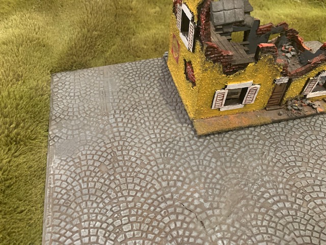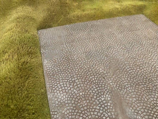 The trick is that this particular fabric has a fur length exactly the height of grass at 1/72 scale so you do not have to cut it or shave it or mess with it at all. You could easily shave roads and paths into it if you like, but i tend to place all my terrain on top, or hills can be anything placed underneath. Other fur fabrics are a pain as they are generally quite long and need a lot of cutting to get them to look like anything else except fake fur…..