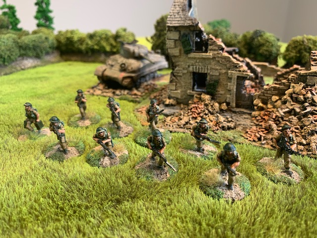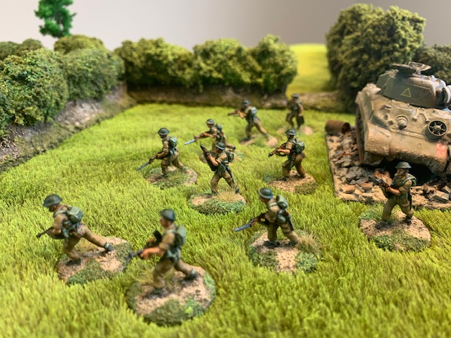 I am so close to finishing up my British Infantry battalion it is not funny. The trouble is i keep finding more awesome figures to buy and paint. This platoon from my favourite AB figures was no exception. I think they are meant for the Far East by the equipment and the presence of a Thompson sub machine gun, but I have painted them up to join my Northumbrian Light Infantry in Normandy. Nothing much to add, they took me ages to paint as usual.