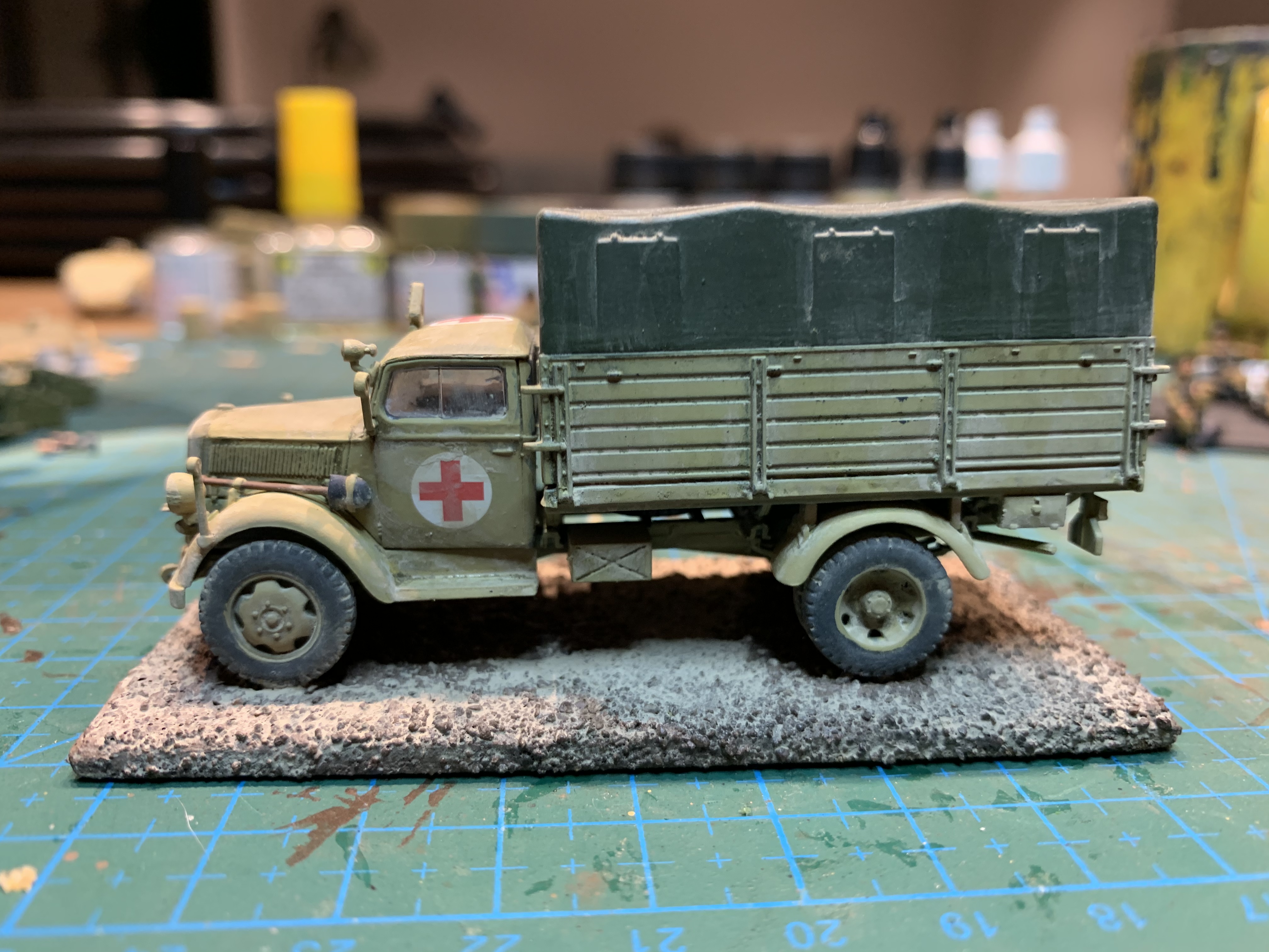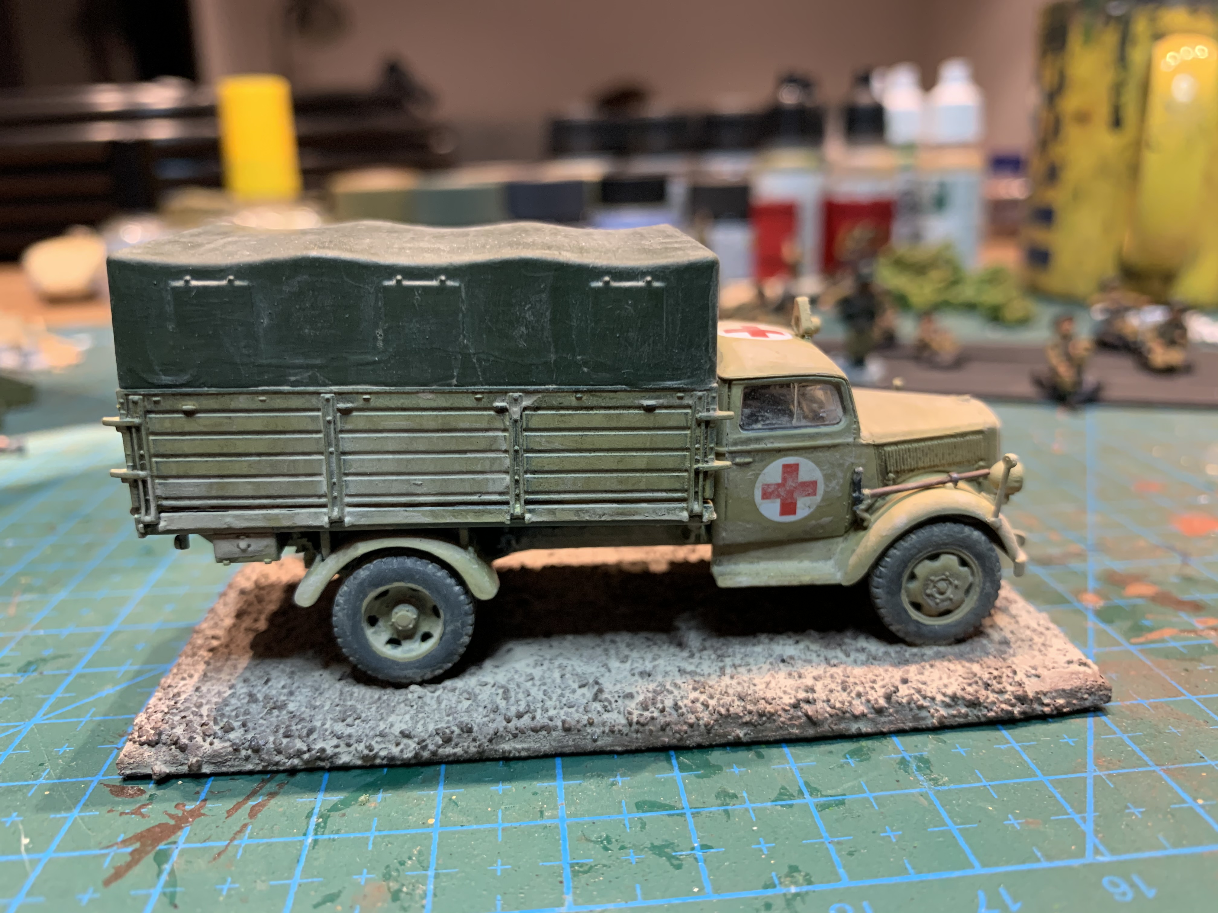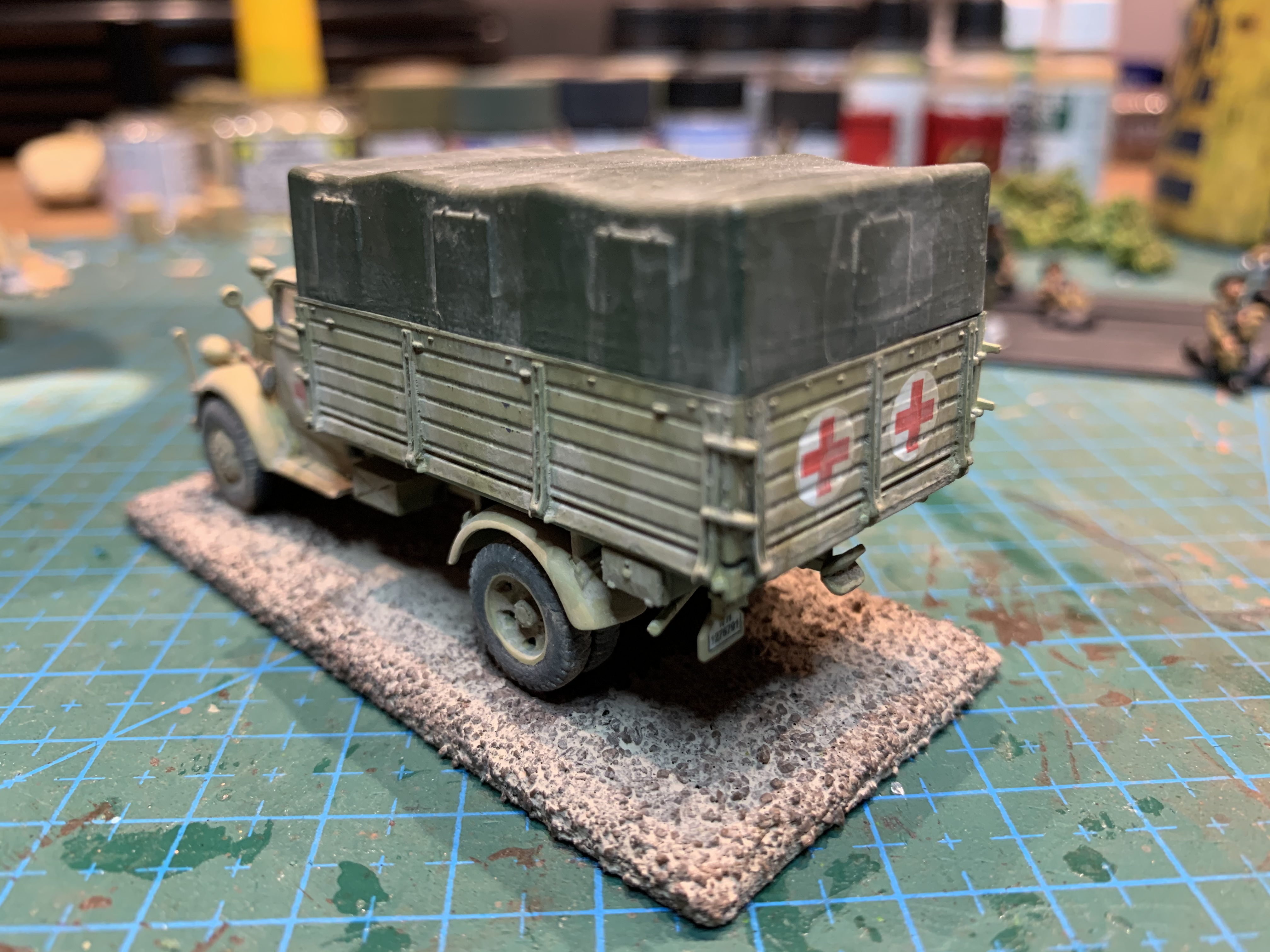 The PSC kits are excellent and just so easy to put together. In such a small vehicle these kits really shine. The tiny tracks are all one piece including the running gear. You can build early or late model carriers with the supplied parts, I wanted spare wheels on the front and two headlights so I am not sure which version that is. I needed to leave the front section off until I had painted the interior and the driver/passenger to make sure it all fitted in ok. The stowage supplied is repeated three times so i added lots of my own stuff to keep it varied. Added a PIAT and SMG plus picks, shovels and fuel cans for some variety. These were super speedy to build and can be dressed up nicely to create individual looking vehicles. The AB figures fit perfectly and make a big improvement over the supplied crew figures. If you are happy having the same crew repeated in each carrier than no need to replace them. No decals are supplied but my IBG kit supplied six different versions of decals so I just pinched three of them. So they are all from different units but it doesn’t bother me….