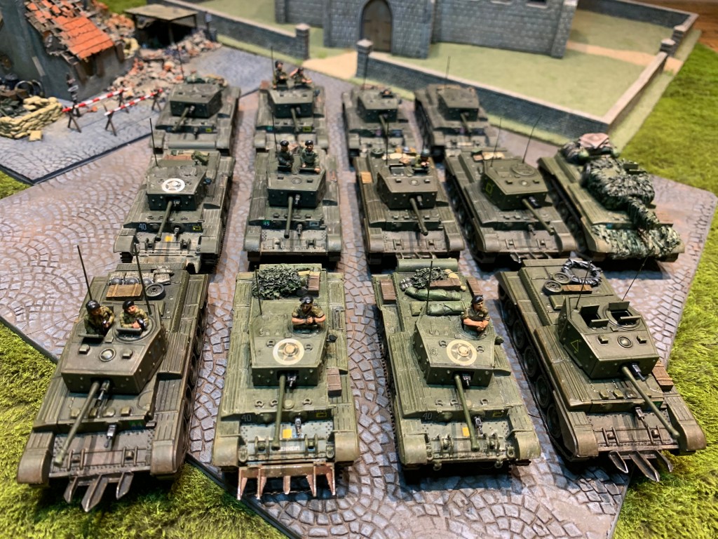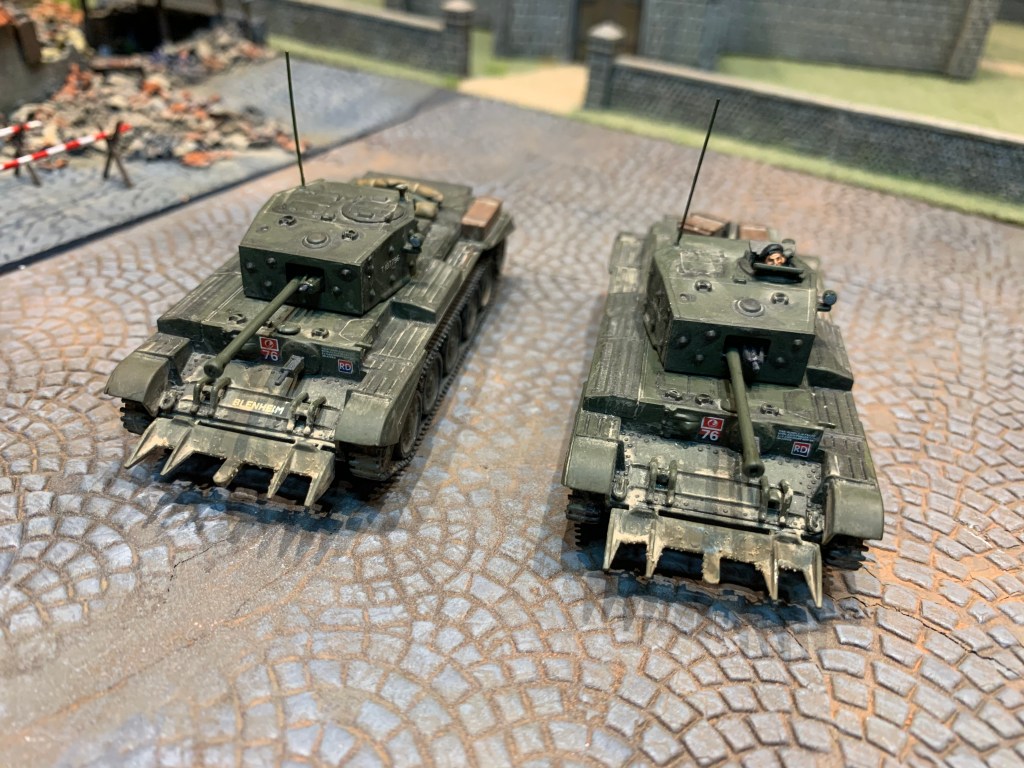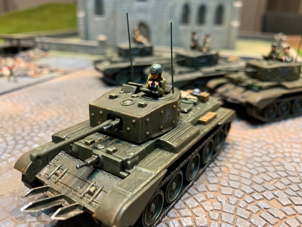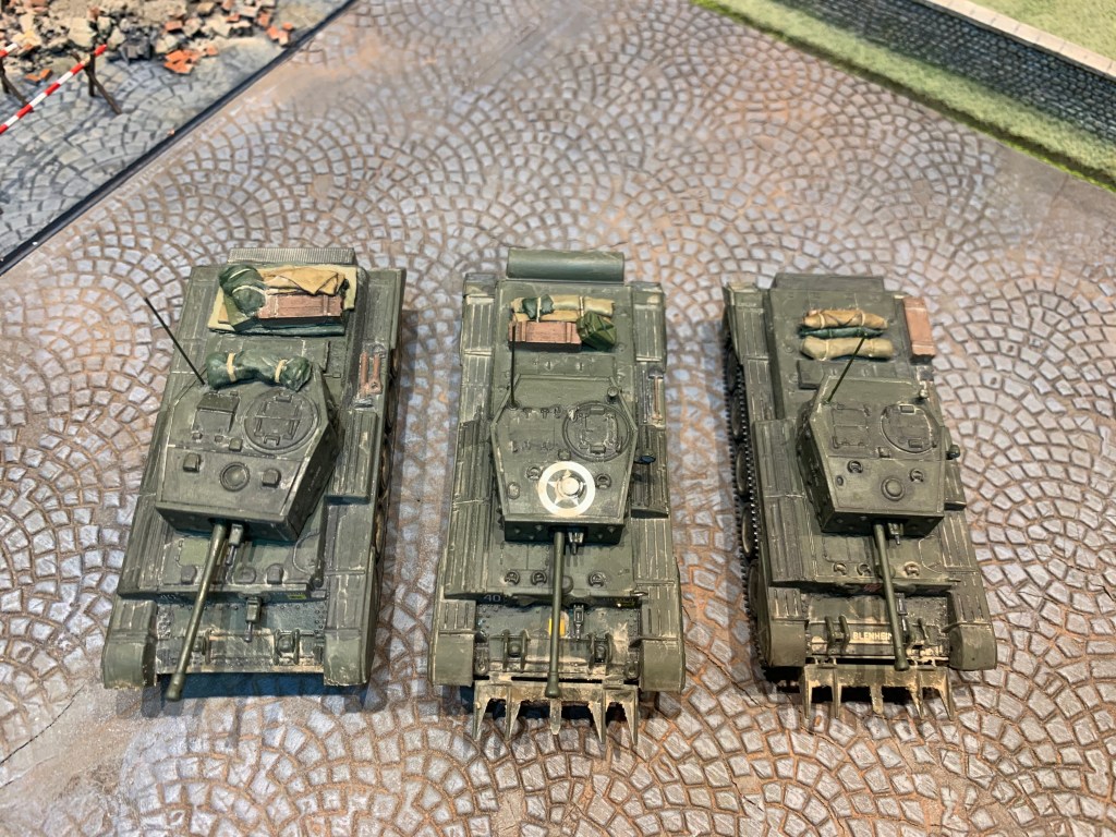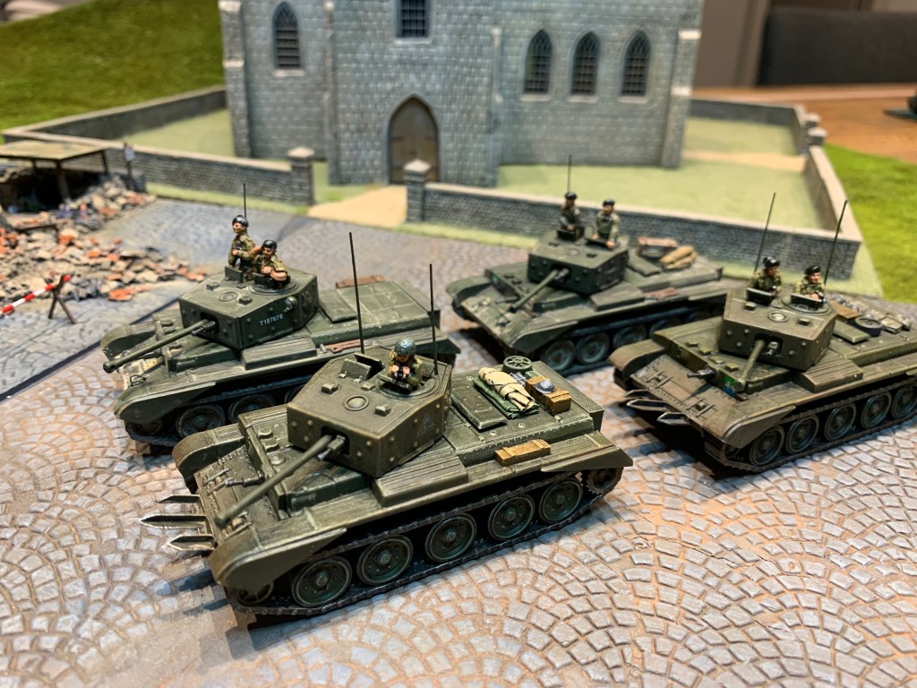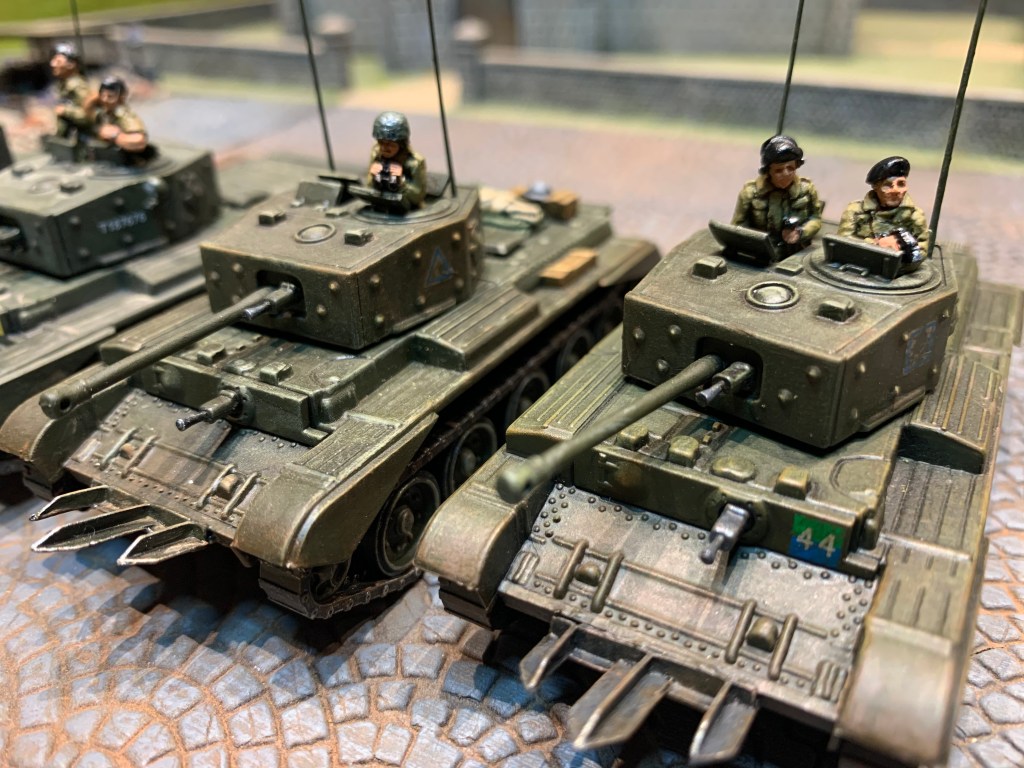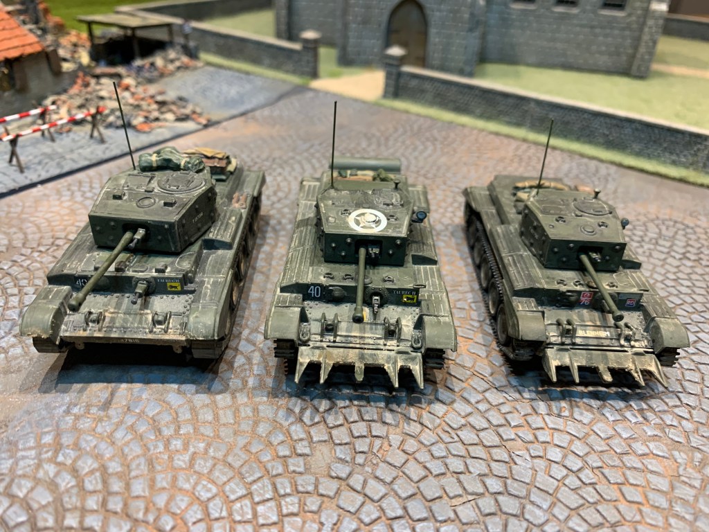 Lastly the Airfix kit is a really nice little tank. It is 1/76 scale so does look a bit smaller, but if you make a complete unit with the same model no one will ever know. See if you can spot the smaller tanks in the photos below. I particularly like their track design with one piece tracks fitting around the road wheels, no stretching or link and length stuff. Easy to build and look really good. Cromwells are great looking tanks and I am happy to have finished this unit now ready for action!