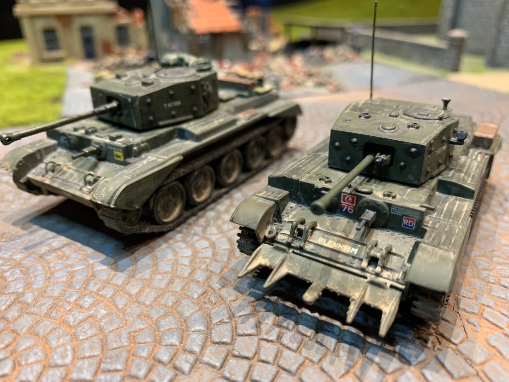 The Armourfast kits are super cheap and come two in a box, but they do need some dressing up to make them a bit more interesting. I added some aerials, hedge cutters, headlight guards, spot lights, extra tools and stowage. This definitely helps them look more interesting as they come in only a few parts. The hatches can be modelled open or closed which is always handy for adding crew. Decals I used from my endless supply of spares and do not intend to reflect any particular unit. Scale wise they match up well with the Revell kits but are significantly larger than the Airfix Cromwell (advertised as 1/76 scale). When i lined them up altogether you do not really notice the big difference in size, but i am not as pedantic as some. Value for money you cannot really go wrong with Armourfast.