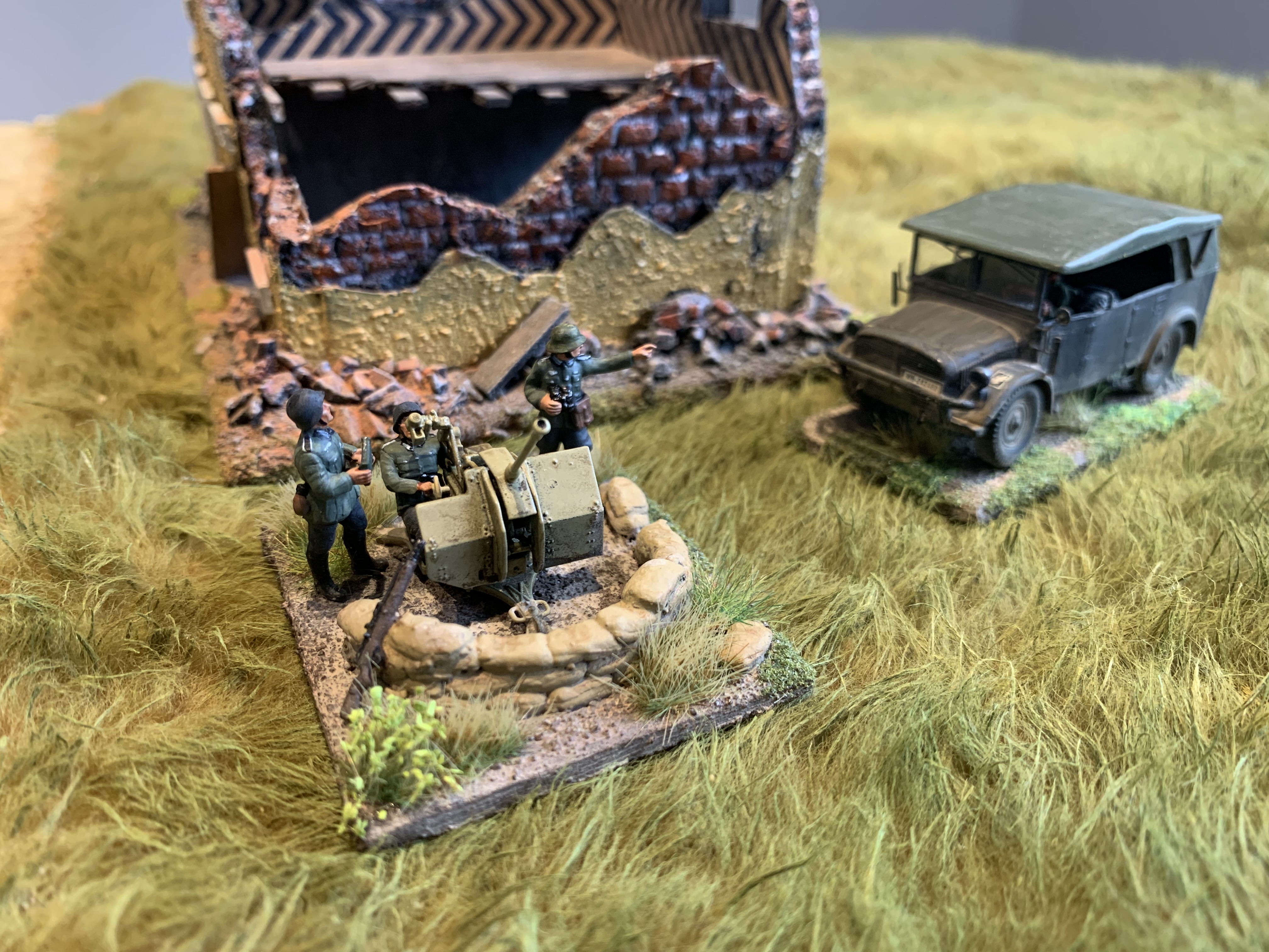 I finished another very cool truck from the Polish company IBG Models. This time a towing vehicle for the British Bofors anti aircraft gun. I always enjoy building their kits and they do produce a wide variety of different models at very decent value. My only criticism is sometimes the parts have too many connection points and removal and clean up can be annoying. This one was also a bit tricky getting the cab put together as lining everything up is more a trial and error thing rather than having specific guide holes or slots. I added a driver as they do not supply one. You have to have someone in control! I used normal cement glue on the windows and windscreen which was not good enough and my windshield fell in after i had completed the kit. So i suggest using super glue instead…..
