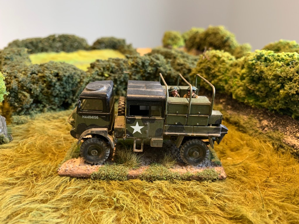 I wanted to do the mickey mouse camo scheme which is one of my favourites. I also added two relaxed looking passengers in the back, from AB figures as usual. This was a fun build and an excellent addition to my growing fleet of British vehicles.