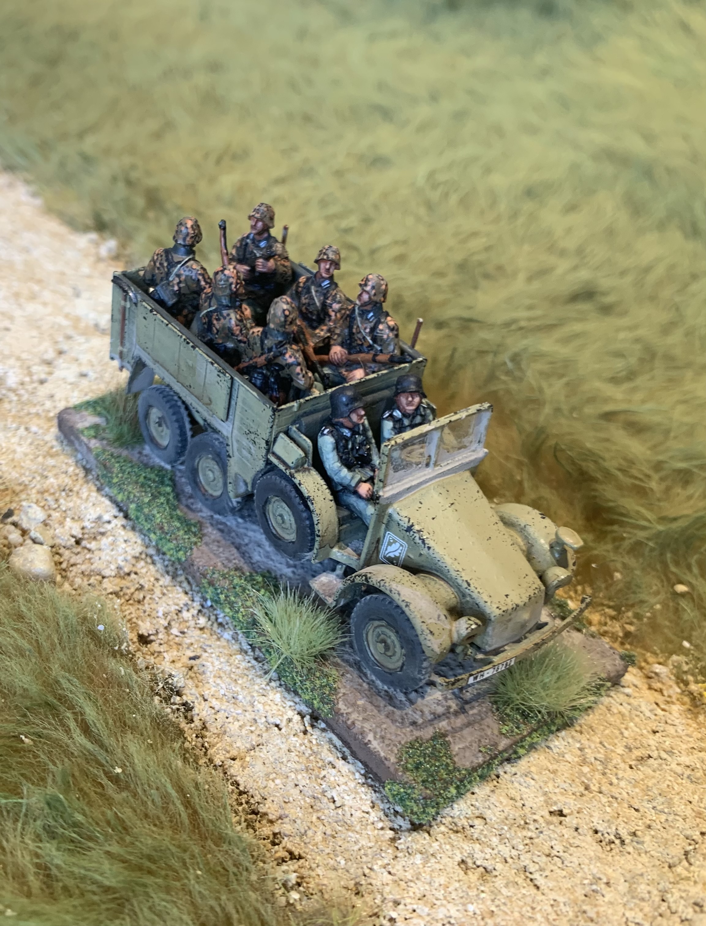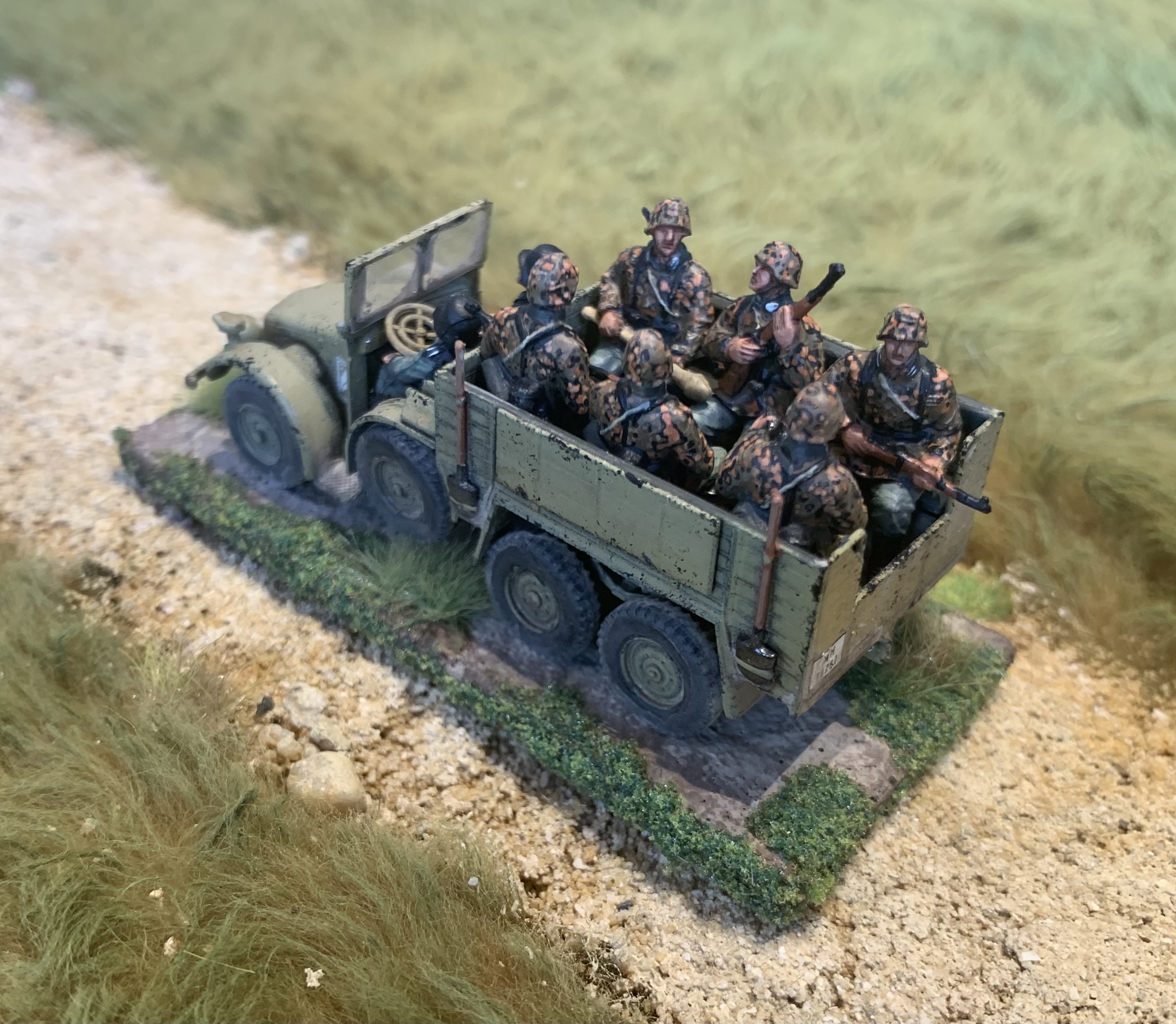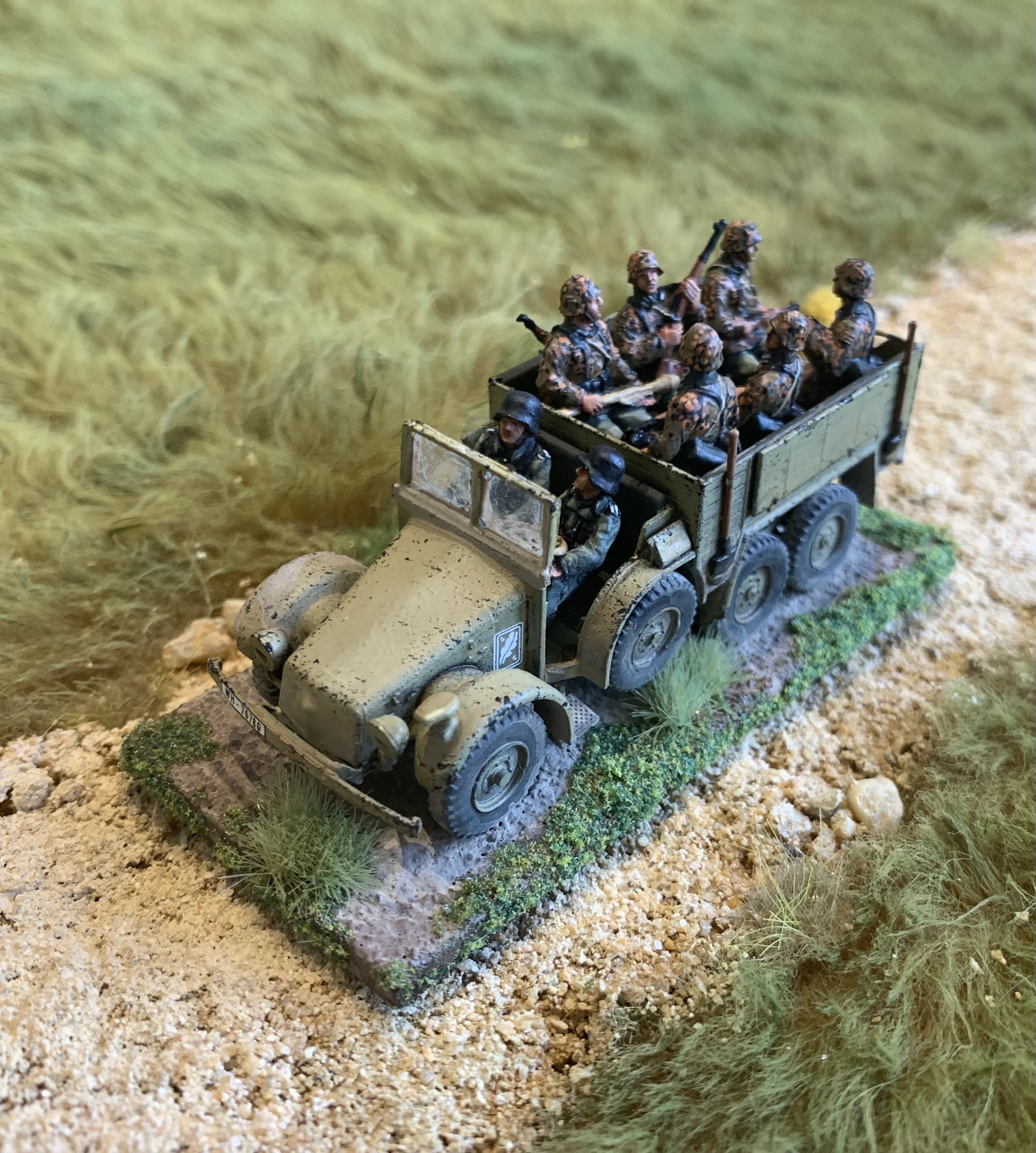 I had a trio of AB Figures British Army officers all based and primed and ready to hit the painting area. Finally while soaking up the excitement of Ashes cricket they were finished! Colonel Bairstow on the left, Captain Stokes in the middle and a casual General Crawley on the right. As always love painting AB figures, the detail is so good they make it easy. The poses are relaxed and natural, I especially like the folded newspaper or betting guide in the Colonel’s pocket. I used custom decals from Company B for their shoulder insignia as that is getting too small for my painting skills and eyes. My eyes are old and grey…… Usual British colours with three shades. Nice gold buttons too on the Colonel’s jacket. Behind is a Dodge weapons carrier from Italeri, a kit that is quite rare these days. Shame they don’t re-release it as I would buy a couple more.