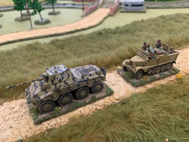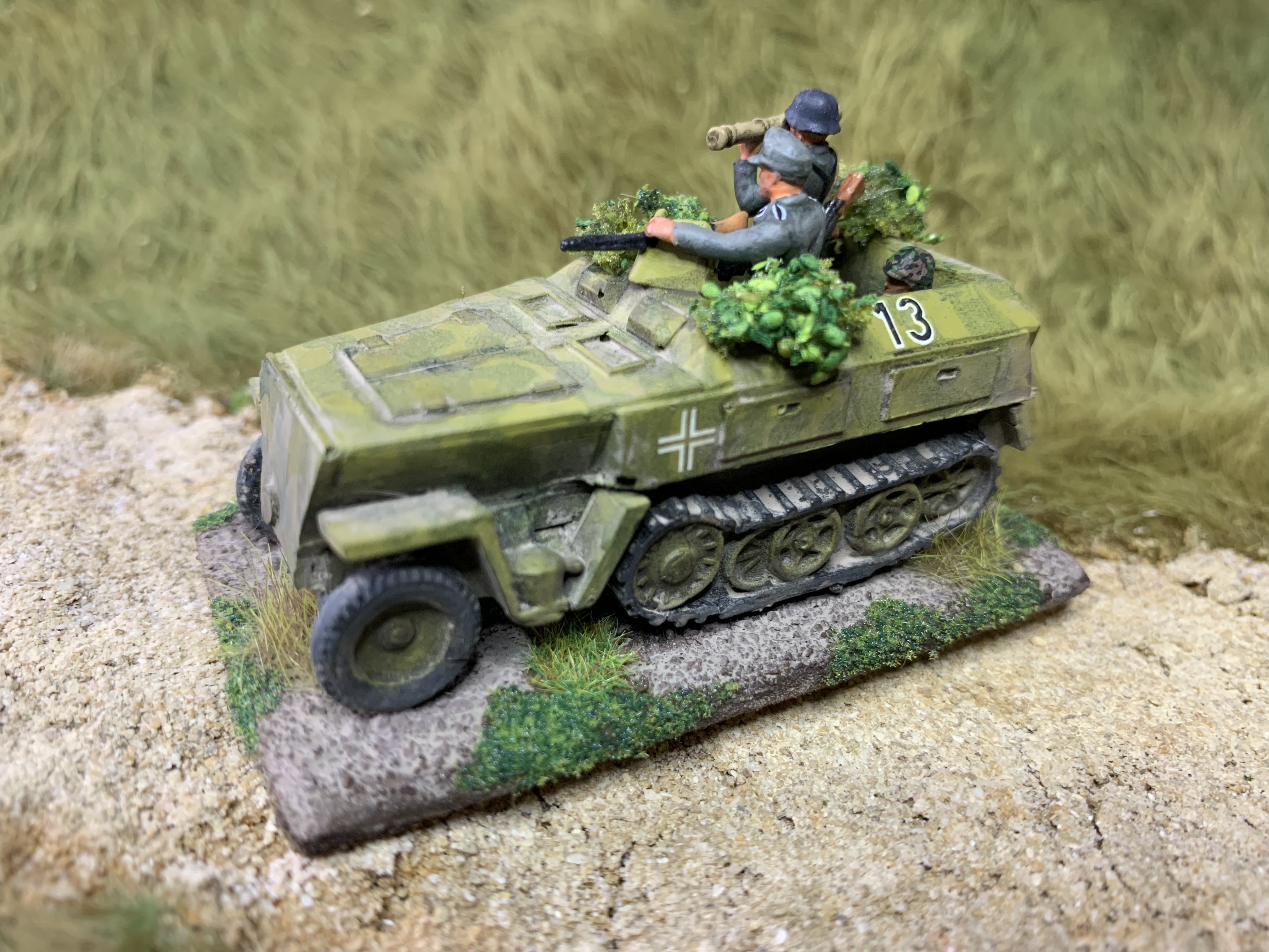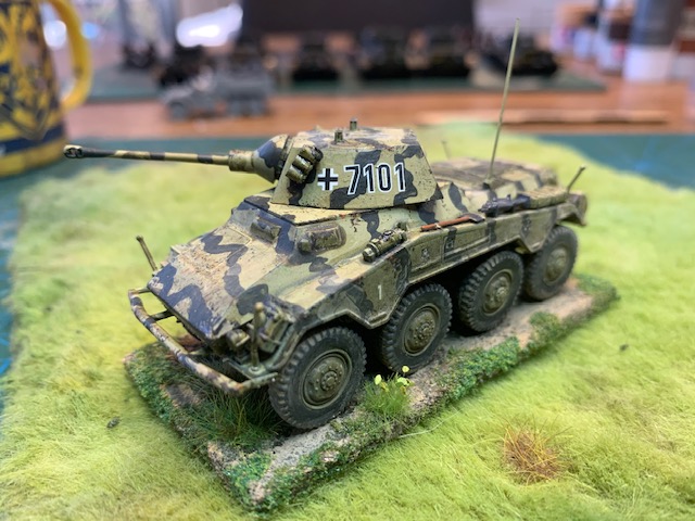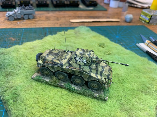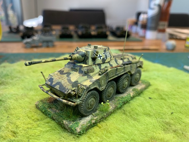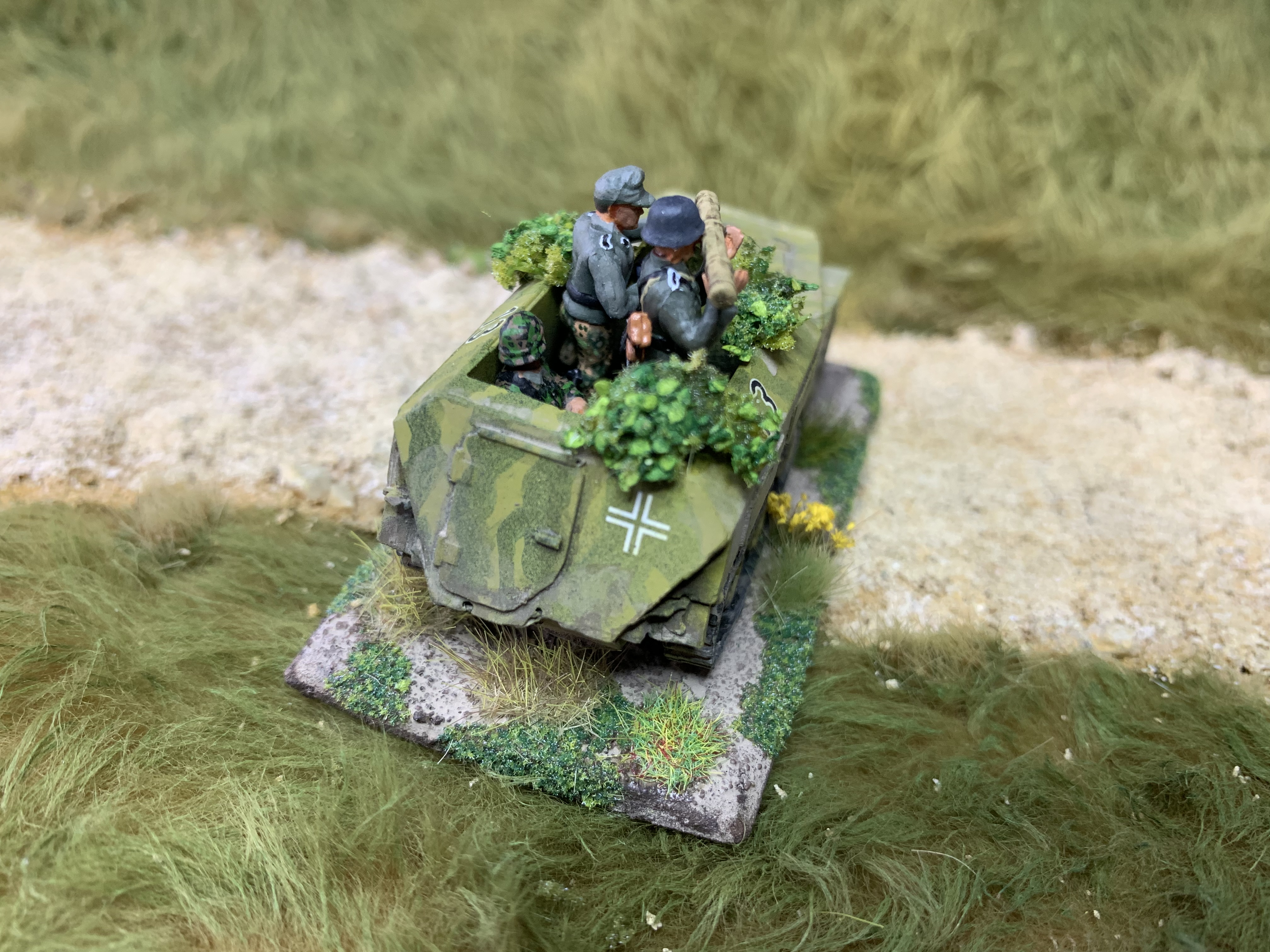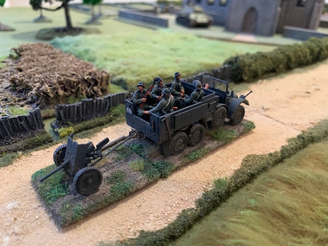 Happy New Year!! It has been a little slow getting things finished as overseas guests and Christmas holidays got in the way. But this little Citroen from ACE Models found its way onto my dining room table and was first off the queue for 2024! I thought I could use this as an emergency transport on the tabletop or just some extra cover on the streets of Normandy. It is a tiny little kit with tiny little parts. Luckily it was quite easy to put together and i did not lose any bits for the vacuum cleaner to pick up. I struggled with the body not fitting flush onto the chassis which leaves a bit of a gap around the boot area but nothing too serious. I painted the seats a nice red brown before putting the body on top. It was a struggle getting windows and the windshield in without making a big old mess. When the windshield needs to be slightly curved I need some kind of more flexible clear plastic. Then there is the problem of not getting glue on the plastic, but having enough glue to make sure the windows stay in place. Tricky business. I painted this a nice light grey and used some metallic silver to highlight the chromey bits on the car like the hub caps. The decals were nice and worked well, of course being extremely tiny they tested out my eyes and manual dexterity……