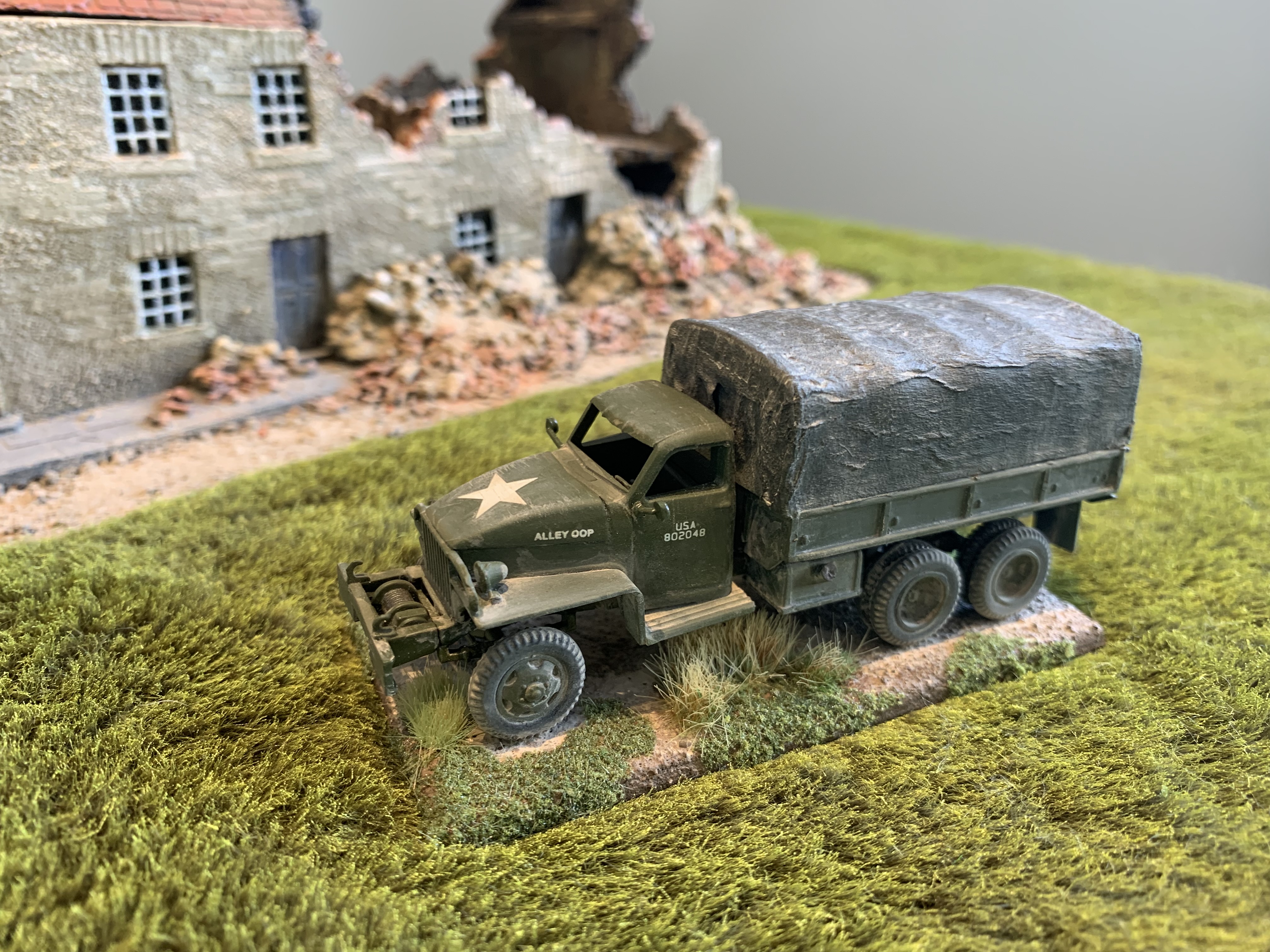 I love building trucks. I will rephrase that. Usually, I love building trucks. I have never built a PST kit before. Except for the fact I have more PST kits in my stash, not sure I would be buying another PST kit to build anytime soon. This was a painful process from start to finish. Horrible vague instructions on like a photocopied sheet. No guide marks or holes for any of the bits. Plastic that doesn’t like my usual plastic cement. Even the sprue attachments are thick and positioned badly in some cases. So building this truck was down to a lot of trial and error. Mostly error. I still ended up with the whole back section too far forward resulting in no room to add the front mudguards. The cab was positioned too far back resulting in the front wheels being too far forward. This was very frustrating to be taking two steps forward before realising things are in the wrong place and having to take three steps back. The axles and undercarriage were very fiddly. It suggests some metal wire as axles in the instructions and I was not sure if they were meant to be supplied or not. Either way I had to use my own. The kit comes with no glass for the windows so by the time I got to this bit I could not face bothering with making my own….. The canvas tilt was super flat and looked like plastic so i did some tissue paper and white glue to cover it up and hopefully look more like canvas.